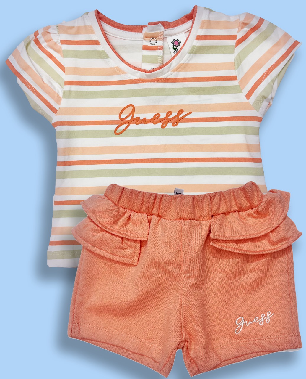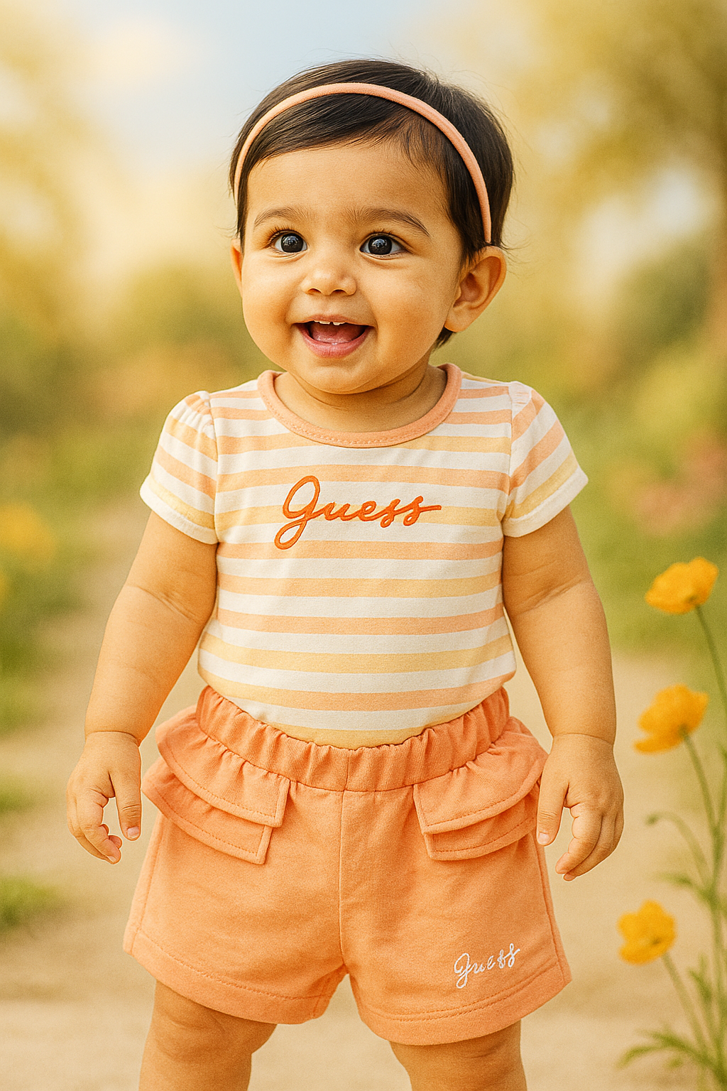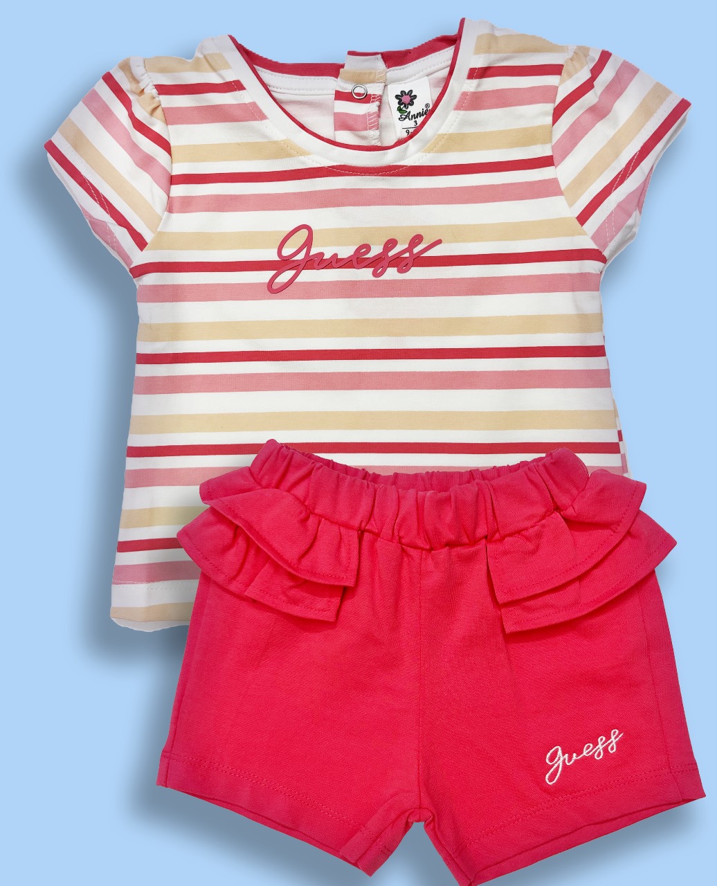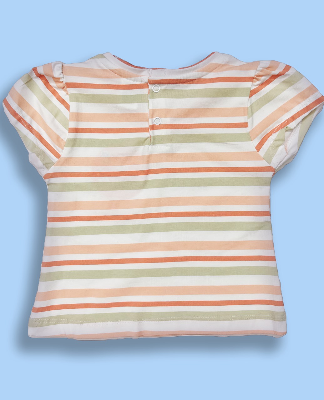 Tshirt for girls Striped Regular length Round neck short Sleeve,with solid shorts Knitted cotton fabric