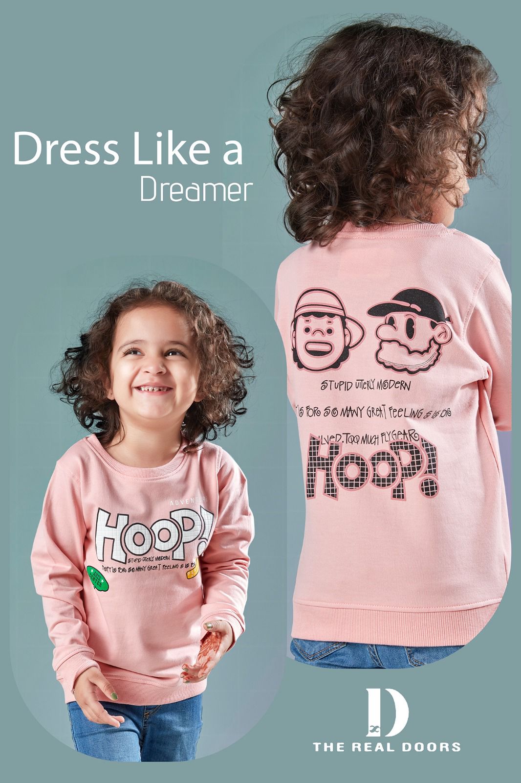 Pink Boys Typography Printed Front & Back Sweatshirt has a round neck long sleeves
