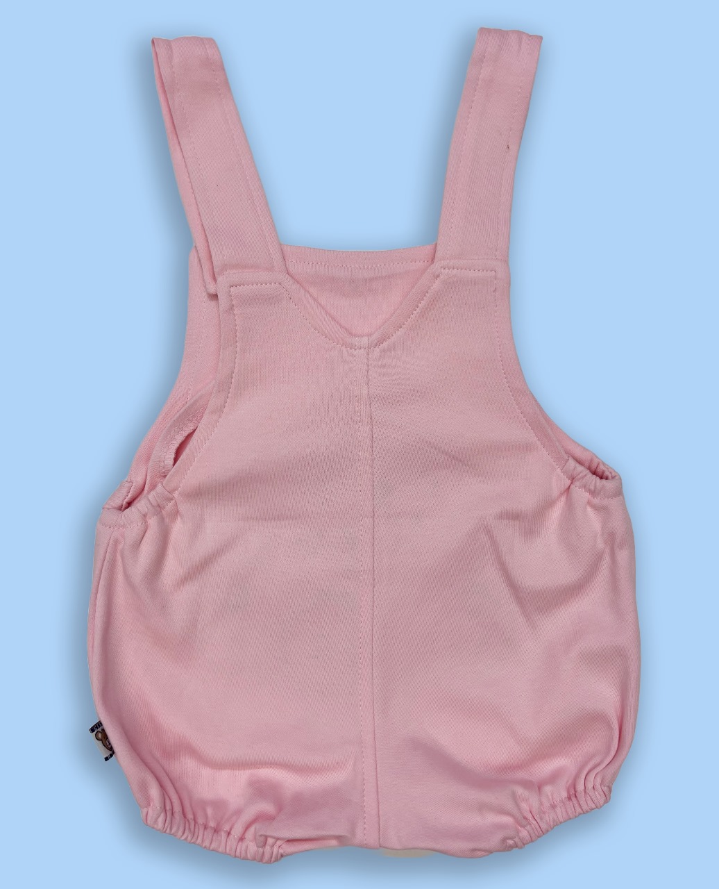 pink colour embroidered dungarees, has adjustable shoulder straps secured with button closure and partially elasticated